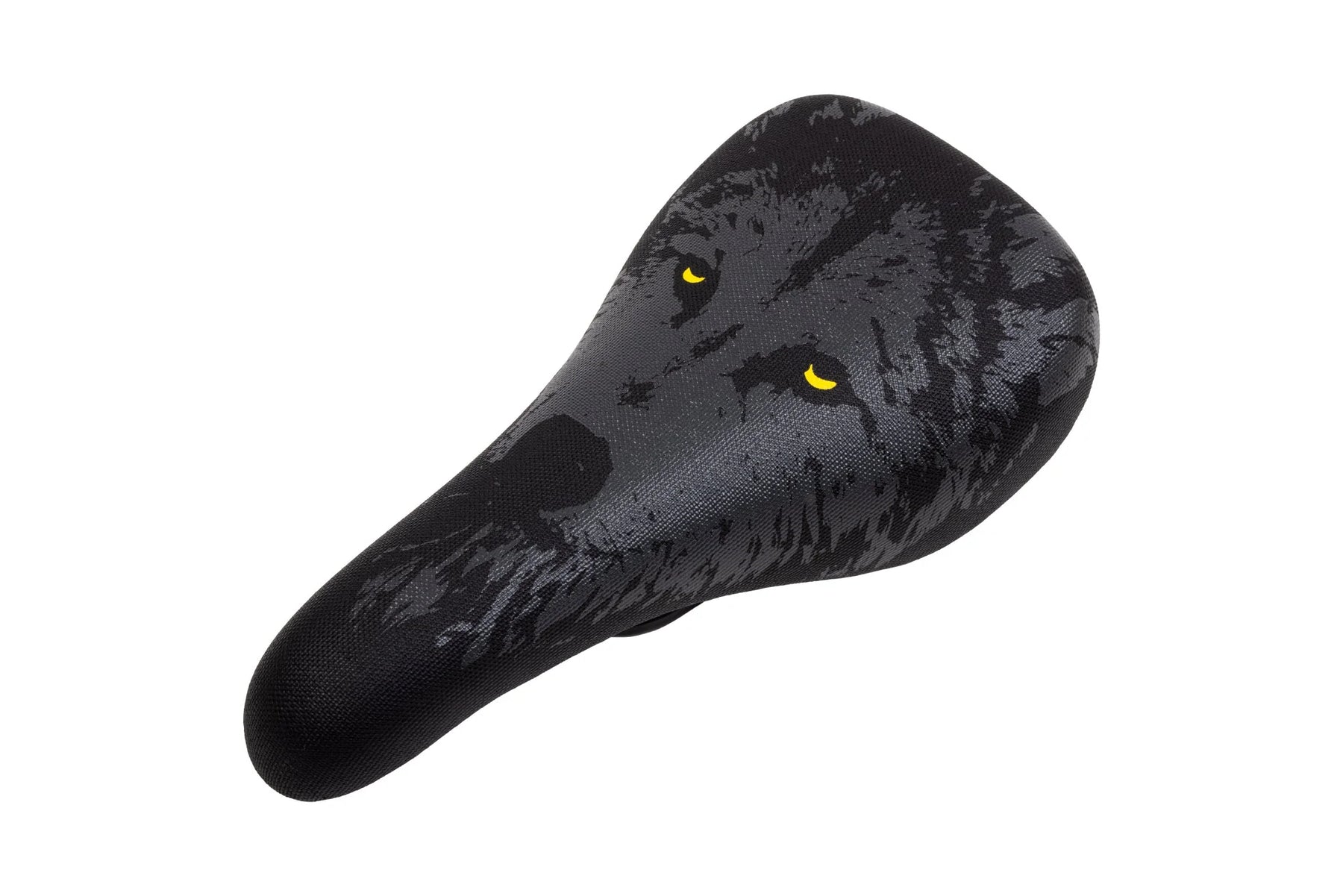 Odyssey's popular Nightwolf saddle makes a return, this time with a Dark Grey reflective print and yellow eyes.